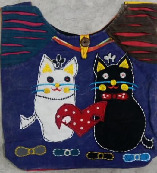 2 Cats w/Heart Embroidered Bohemian Hobo Bags