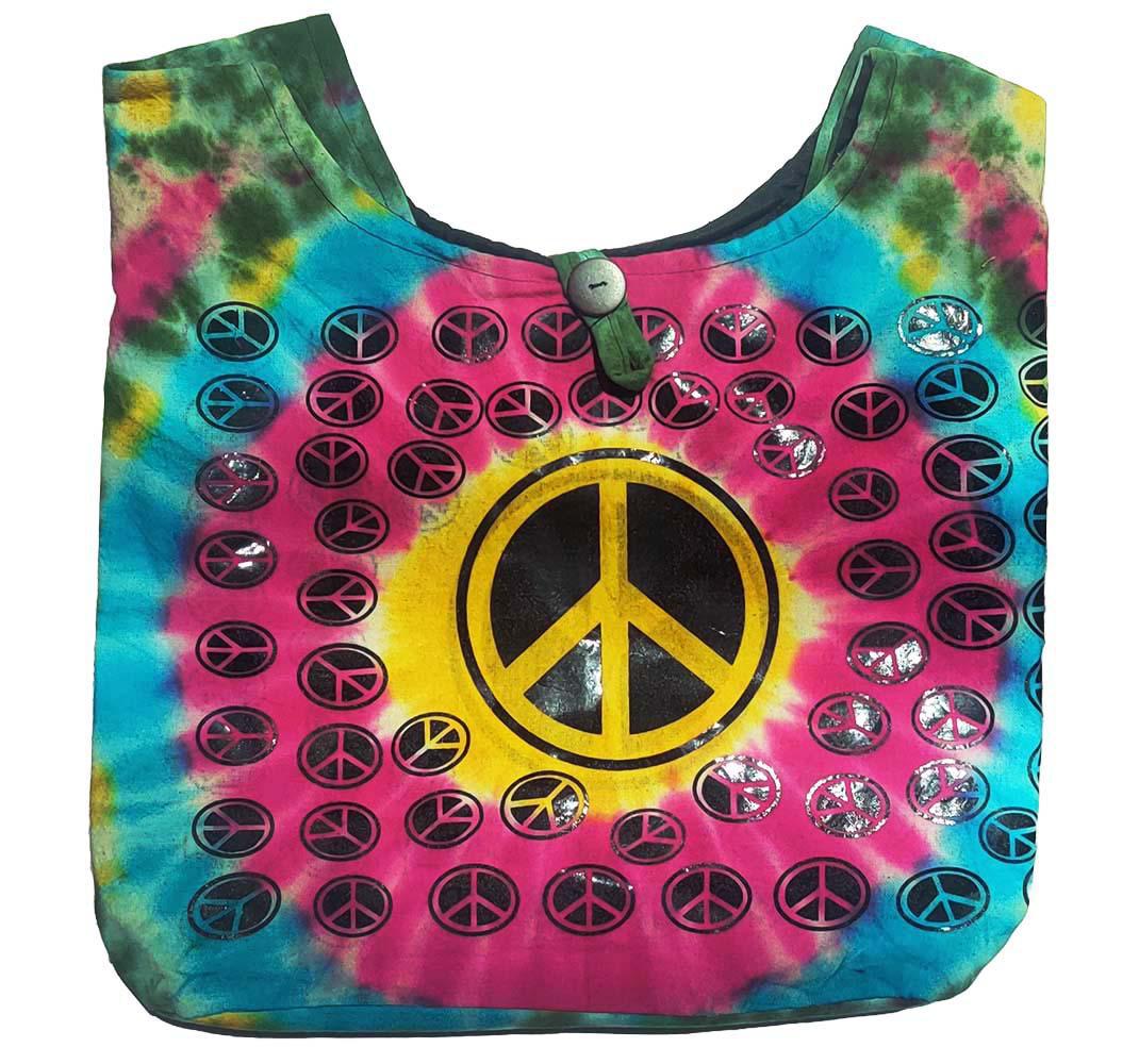 Tie Dye Bohemian Hobo Hippie Bag with Peace Sign