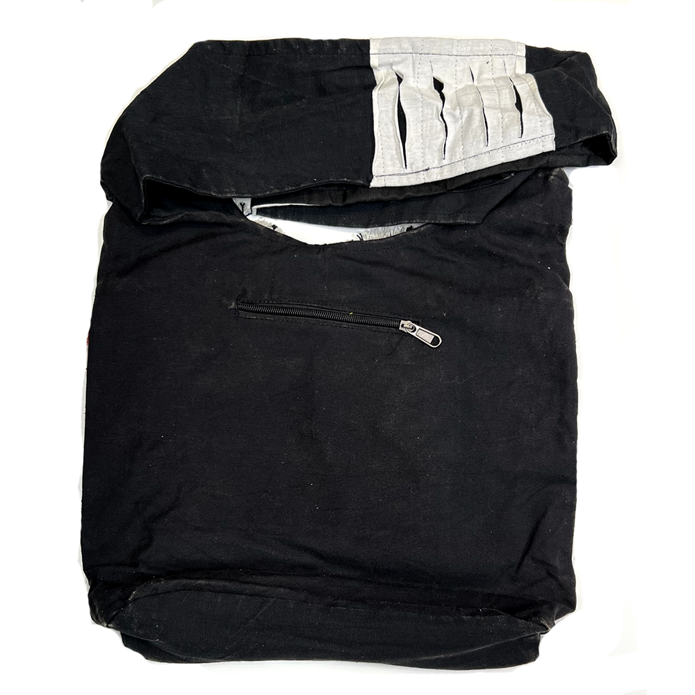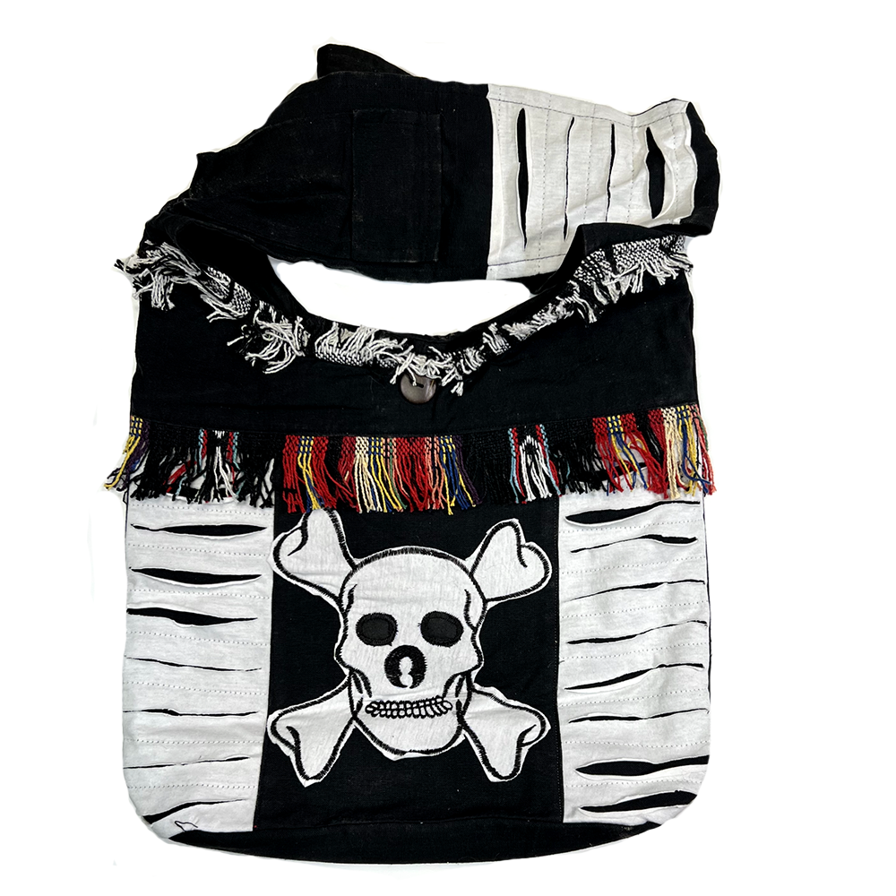 - This astoundingly bohemian bag is lined black from inside, has a zipper and a button closure on the top and a small zipper pocket inside.