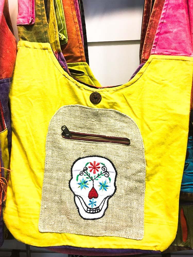 Sugar Skull on Hemp Background Embroidered Bohemian Hobo Bags