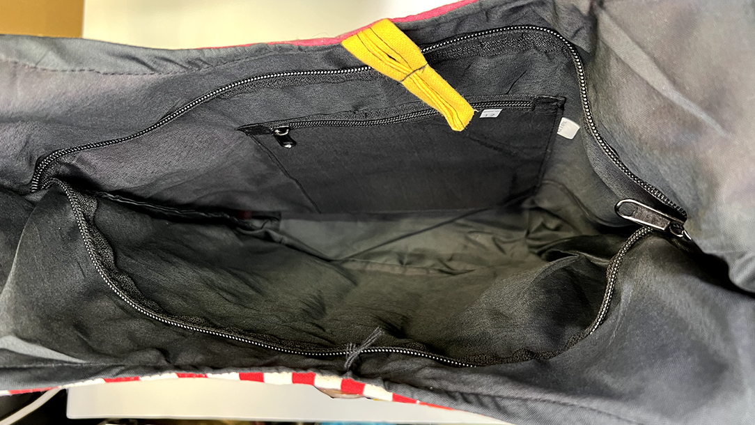 - This astoundingly bohemian bag is lined black from inside, has a zipper and a button closure on the top and a small zipper pocket inside.