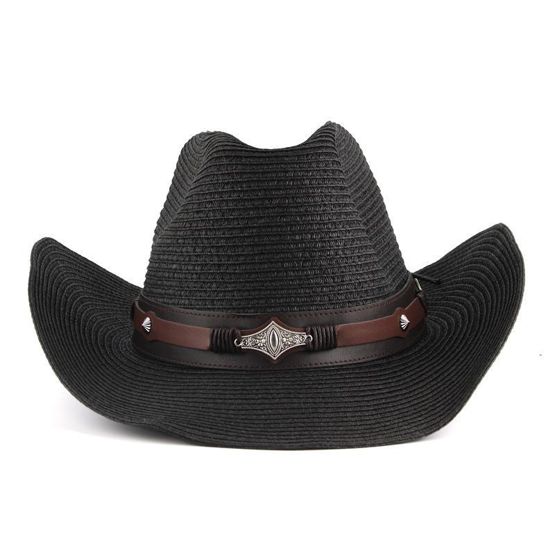 Cowboy Straw Hat For Men/Women Unisex Attractive Hat with Leather Strap;  Adult One Size Fits Most (22-23 inches), adjustable size