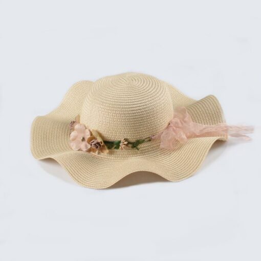Straw Hat with Flower and Even Brim; Adult One Size Fits Most (22-23 inches), adjustable size