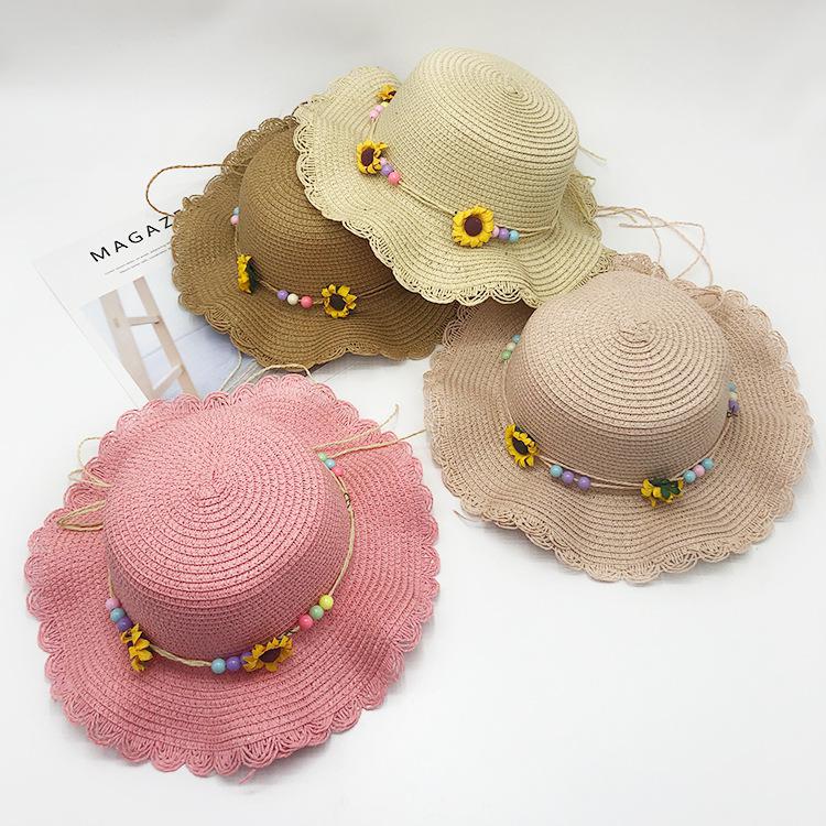 Sunflower & Beads String Straw Hats For Women Summer Grass Folding Visor Hat