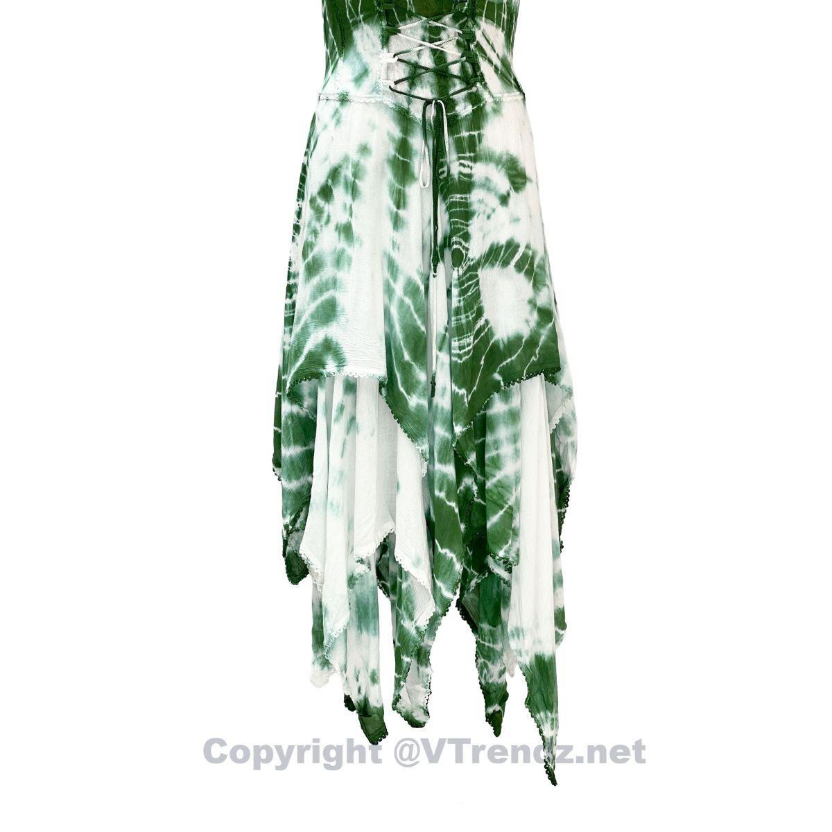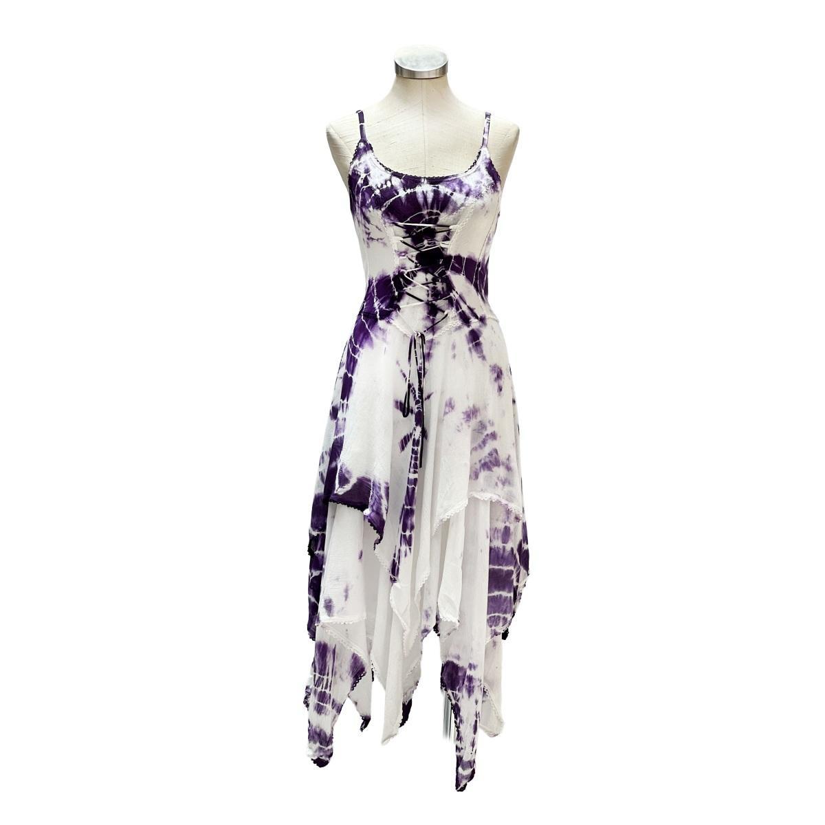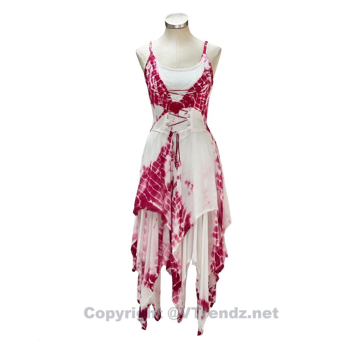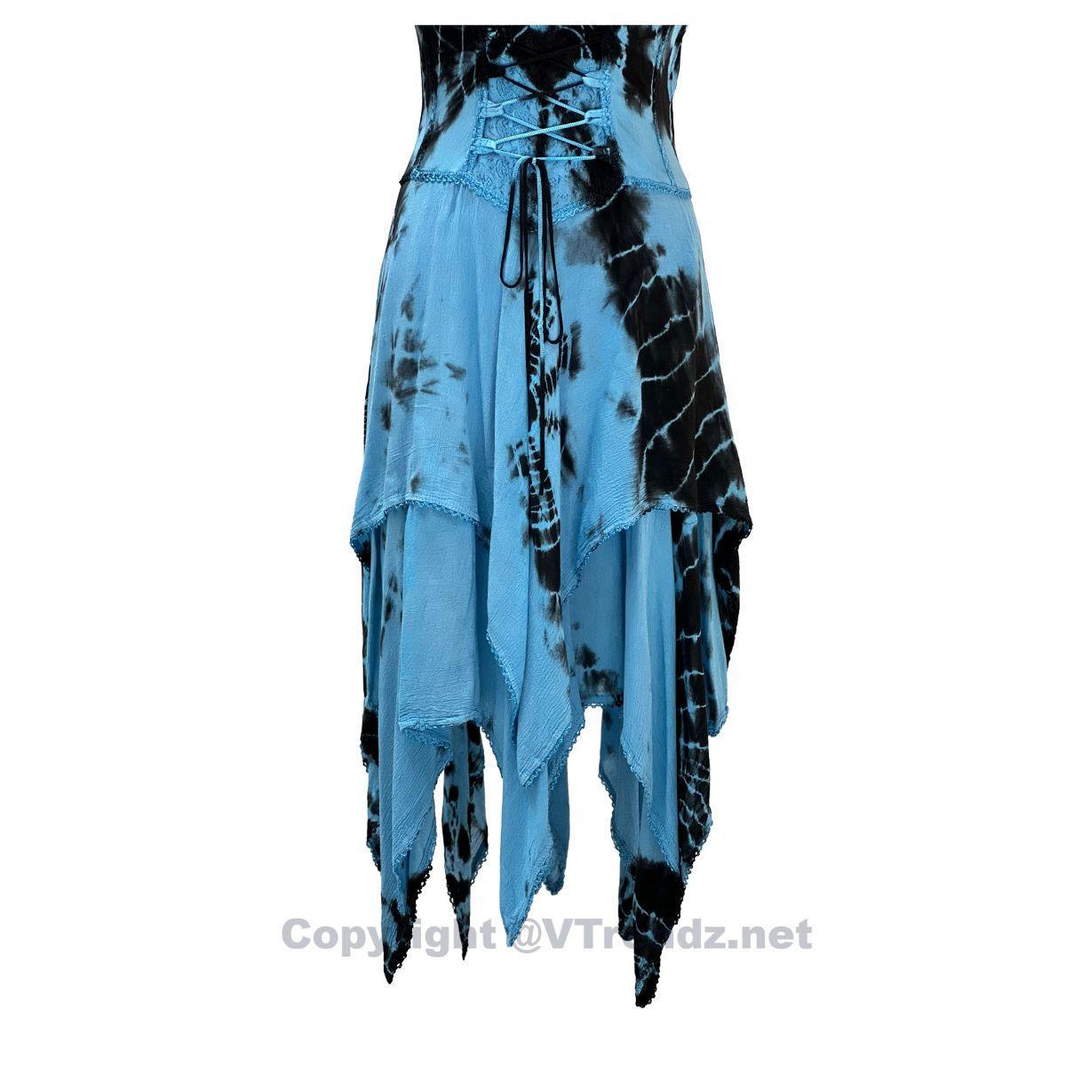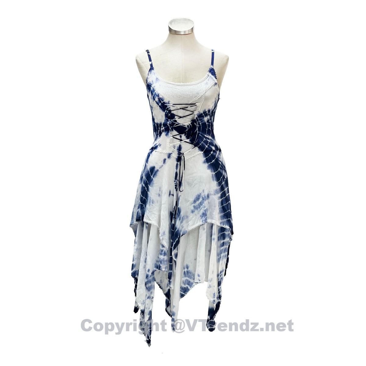 2 Layer Tie Dye Handkerchief Dress with Corset in Front, Adjustable Back and Straps