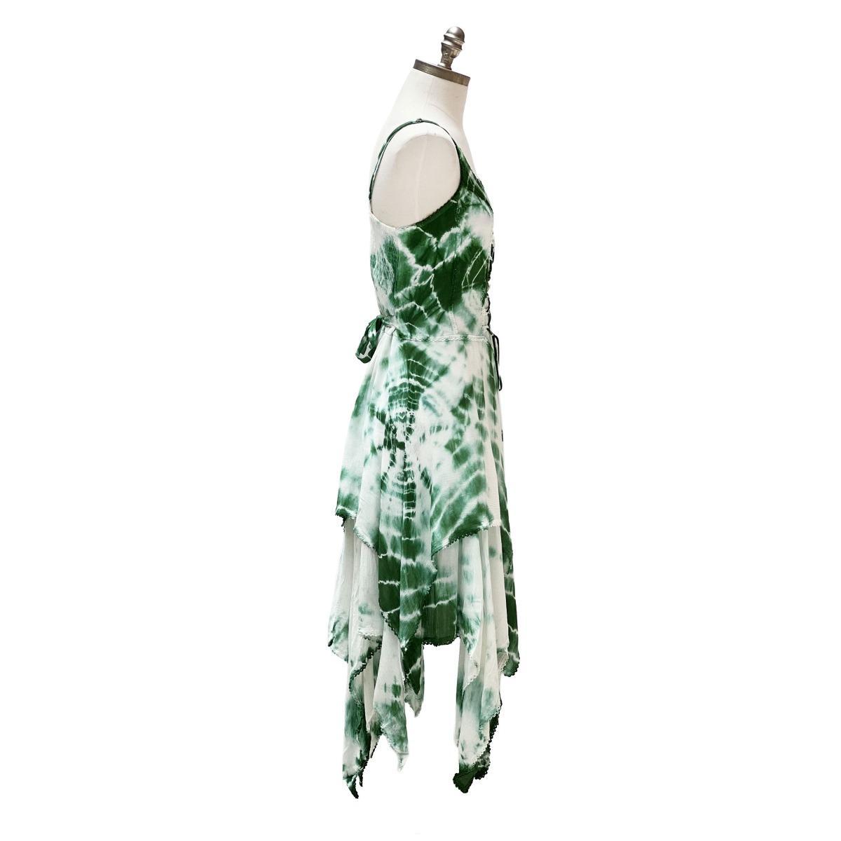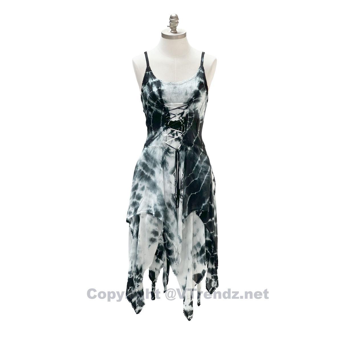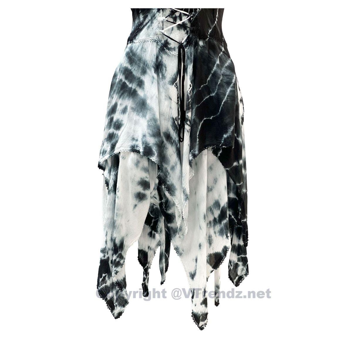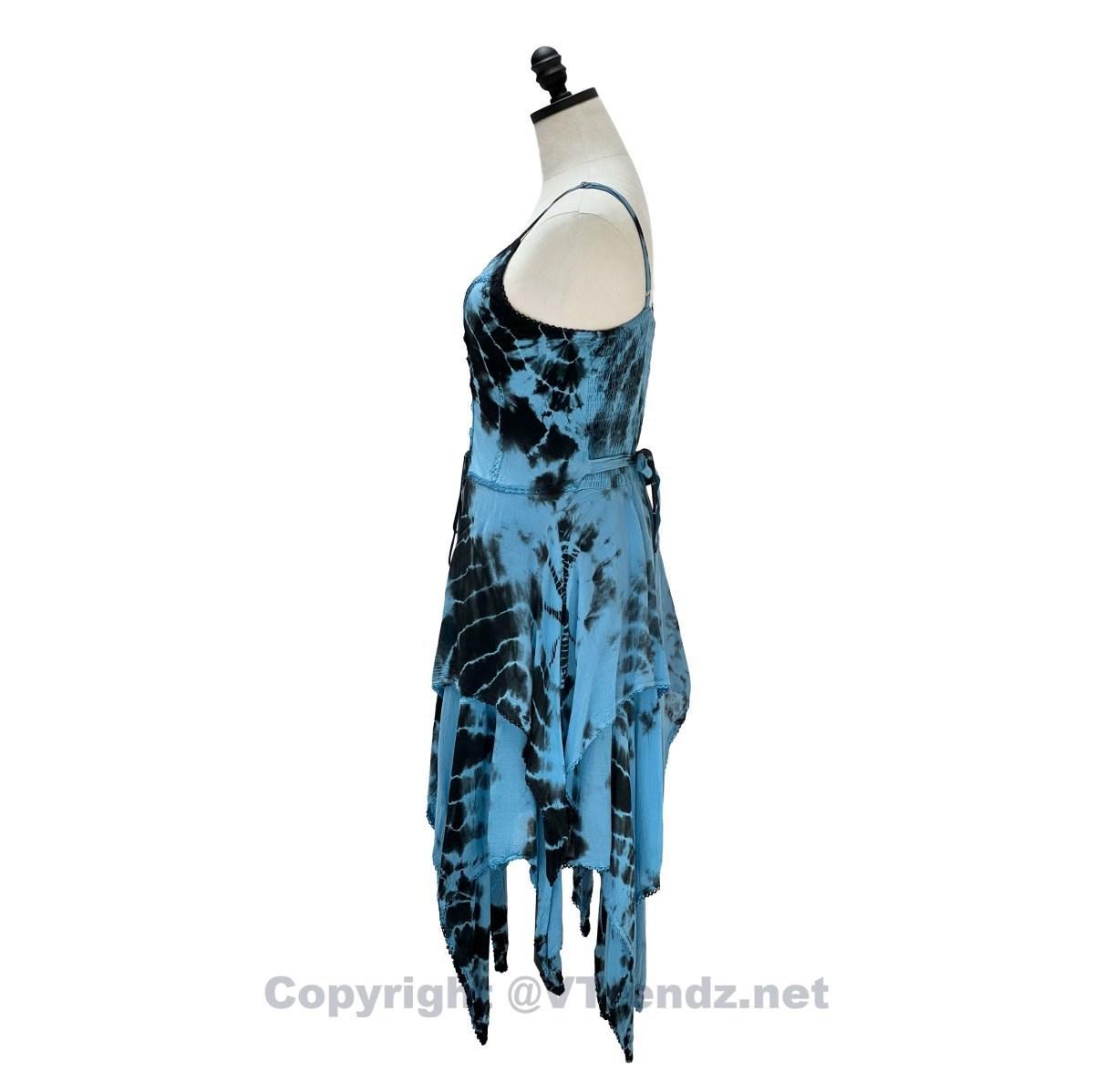 2 Layer Tie Dye Handkerchief Dress with Corset in Front, Adjustable Back and Straps