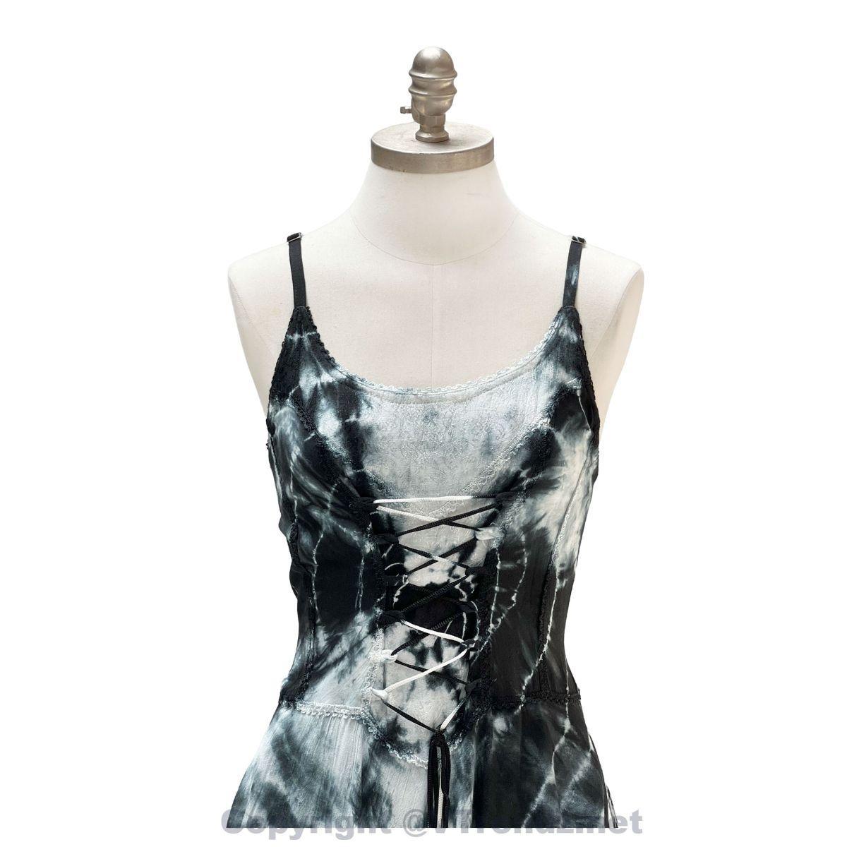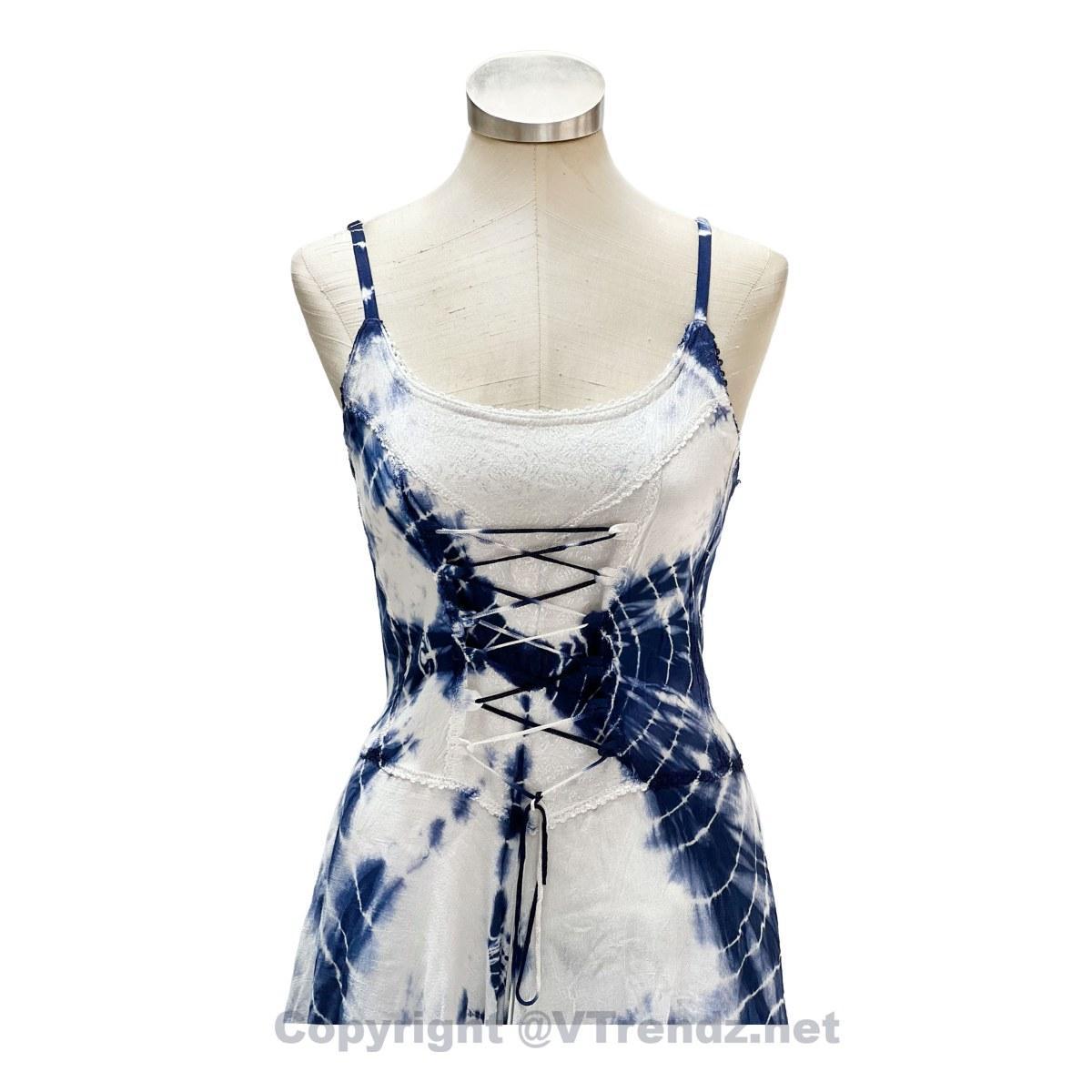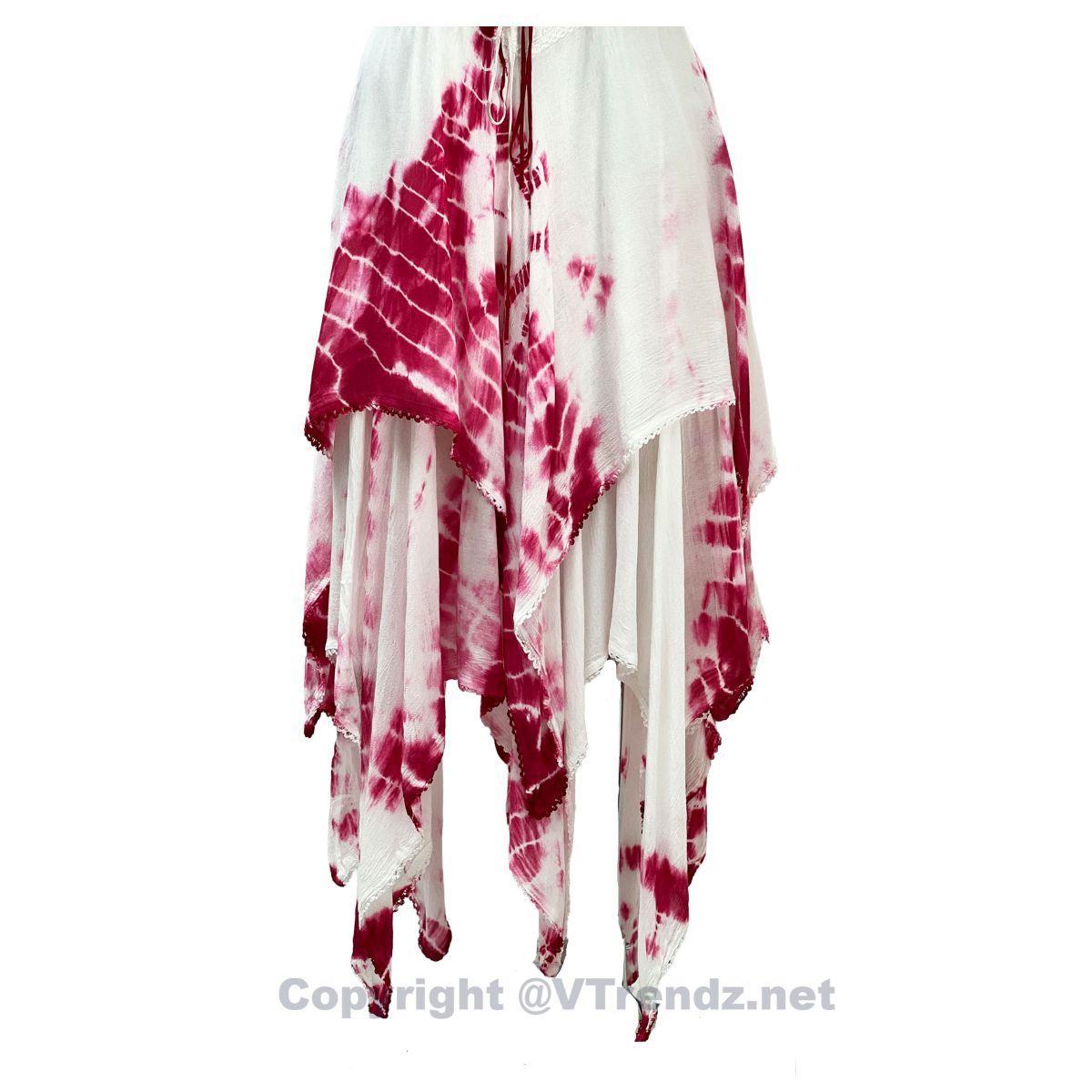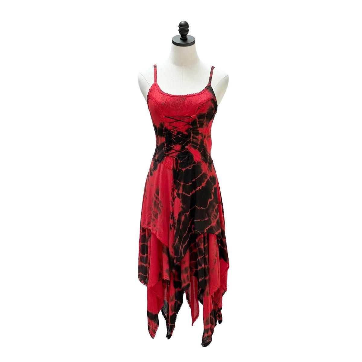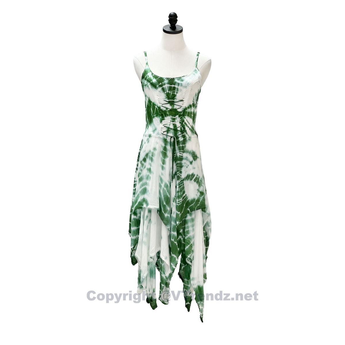 2 Layer Tie Dye Handkerchief Dress with Corset in Front, Adjustable Back and Straps