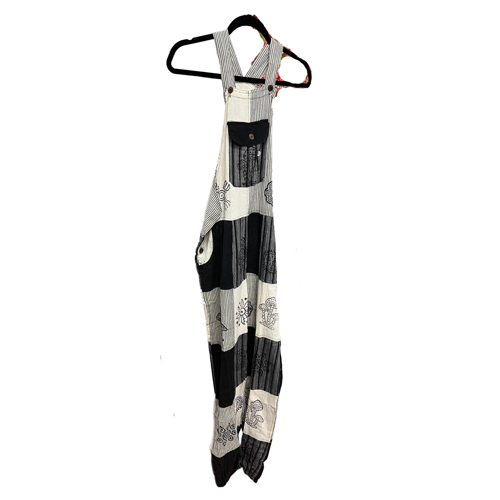 Overalls Jumpsuits Black and White Boho Patchwork Elastic Bottom 100% Cotton