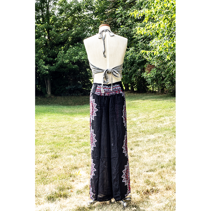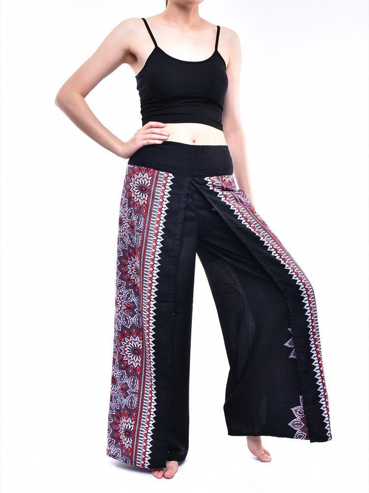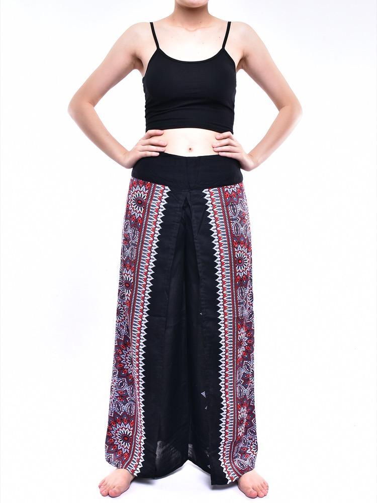 Black Palazzo Pant Flower Print Rayon Comfy & Trendy Thai Boho Pant One Size Fits Most 100% Rayon