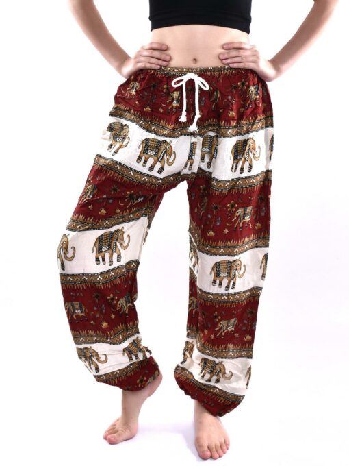 Elephant Print draw string Thai harem pants with single pocket 100% Rayon
