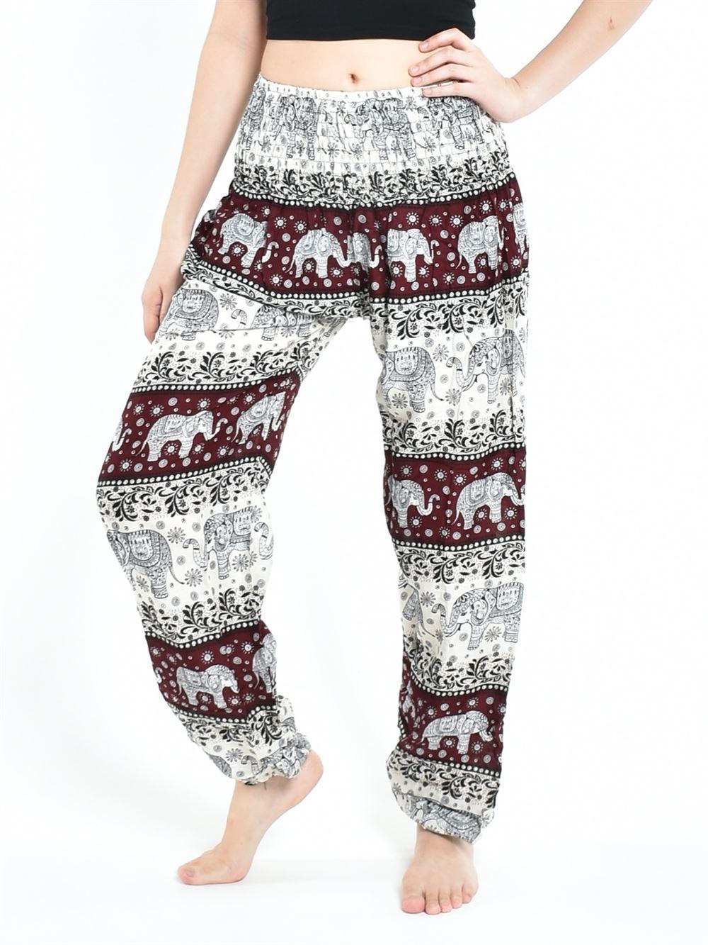 Thai Harem Pants Elastic Waist with Elephant Print and single pocket, Boho Pants Hippie Style Yoga comfort Bohemian 100% Rayon