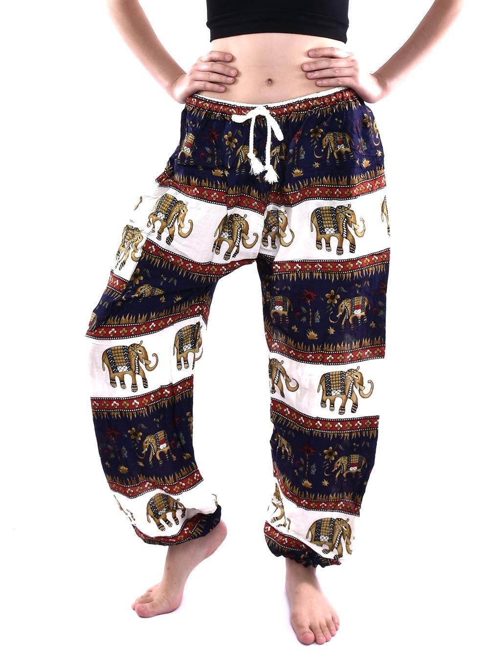 Elephant Print draw string Thai harem pants with single pocket 100% Rayon