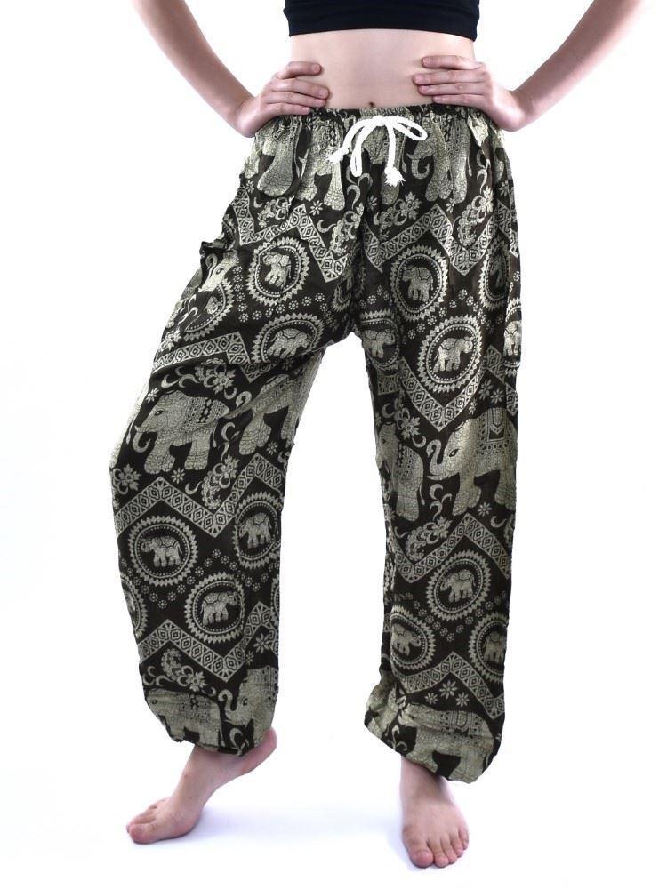 Elephant Print draw string Thai harem pants with single pocket 100% Rayon