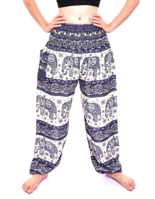 Thai Harem Pants Elastic Waist with Elephant Print and single pocket, Boho Pants Hippie Style Yoga comfort Bohemian 100 % Rayon
