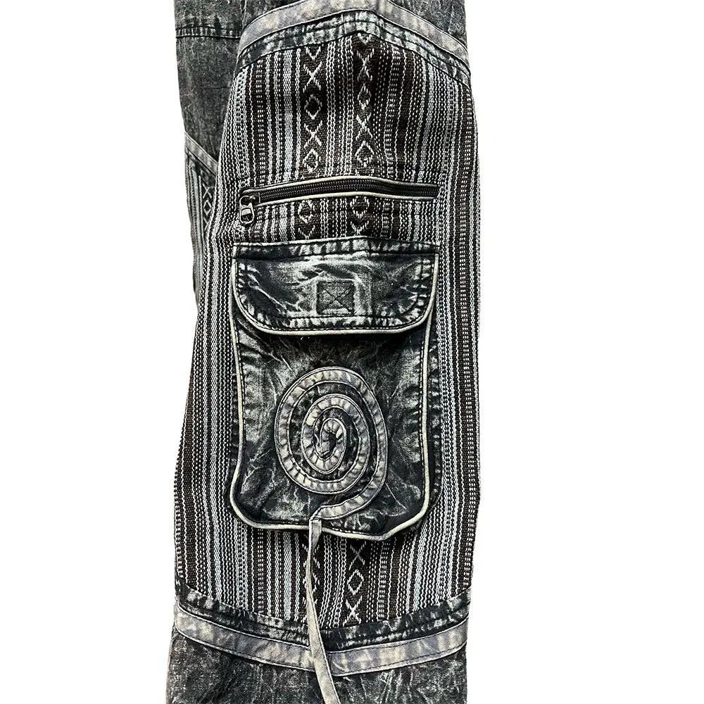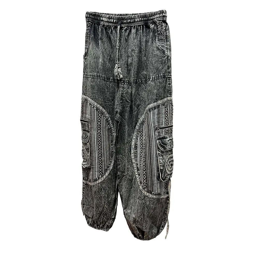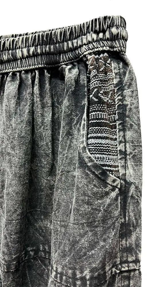Mineral washed Black Knee Patch elastic Bottom Pants