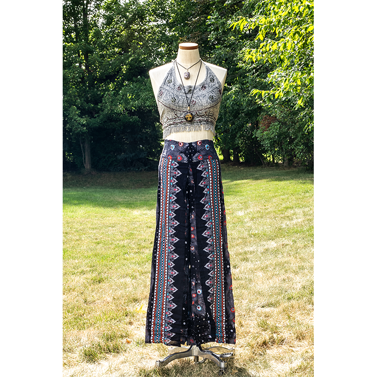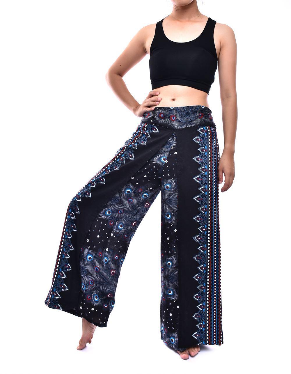 Black Feathers Open Leg Thai Palazzo Pant Rayon Comfy & Trendy Feather Print One Size Fits Most 100% Rayon