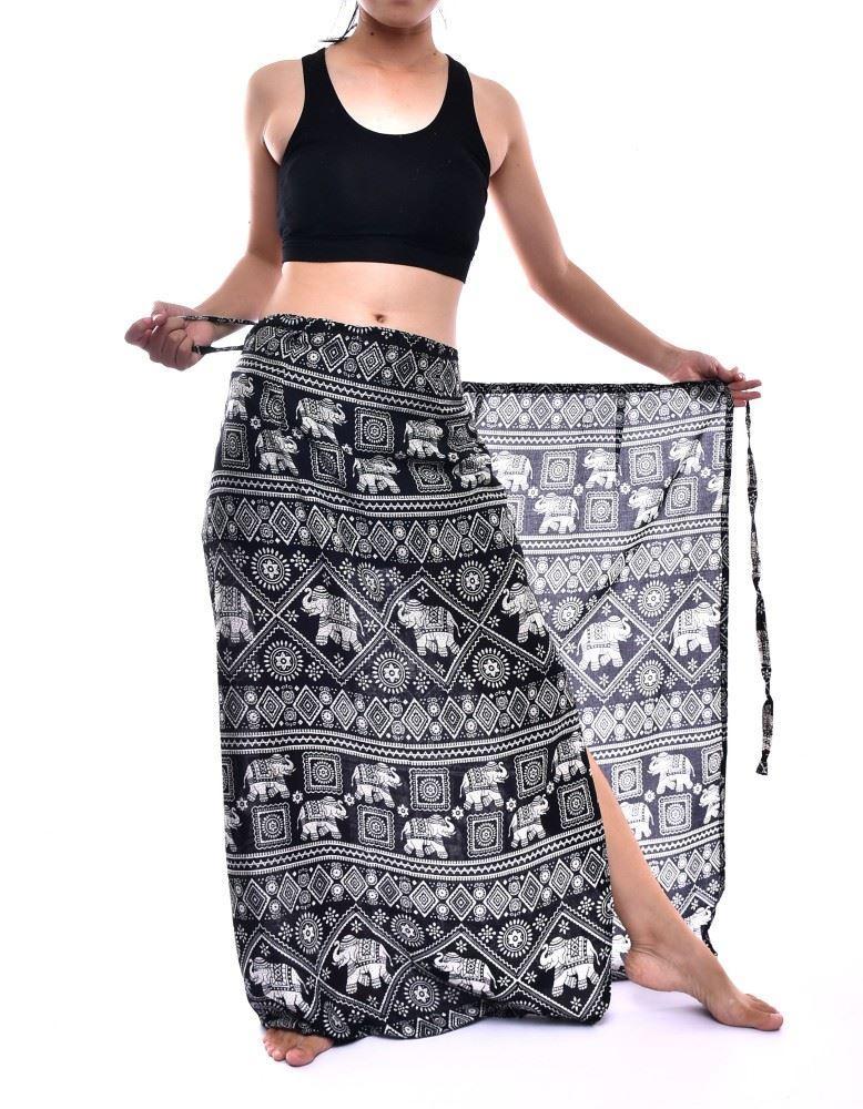 Elephant Print Sarong Black and Cream Cover-up/ Skirt