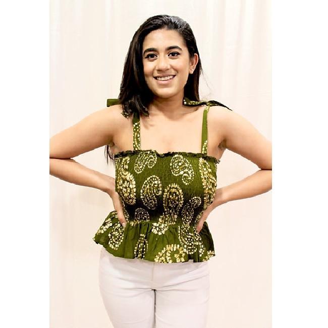 Crop Tops Batik Printed with Ruffles One Size Fits Most