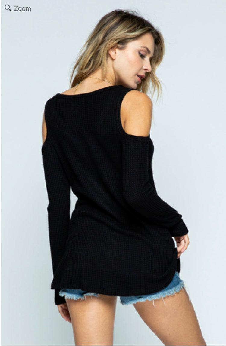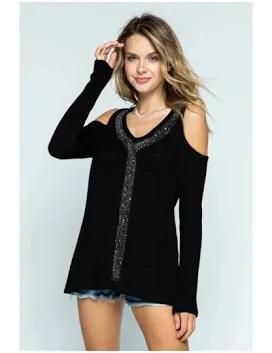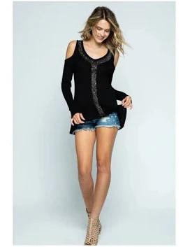 Soft Cold Shoulder Top with Rhinestones by Vocal