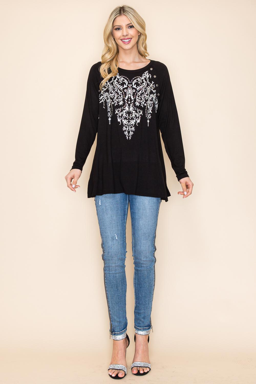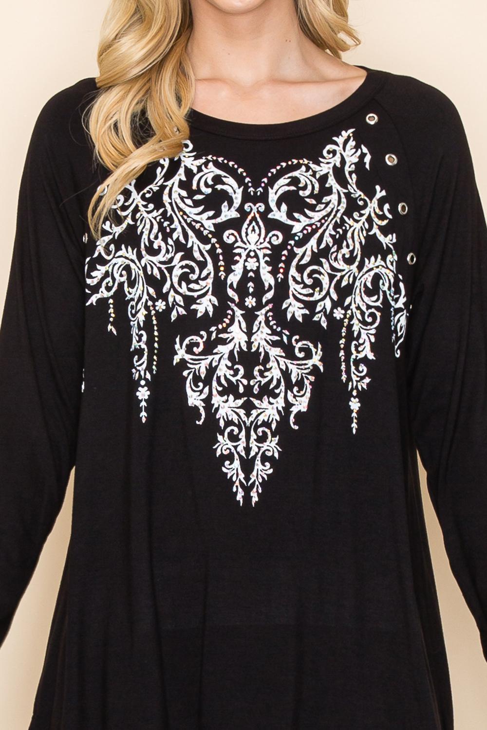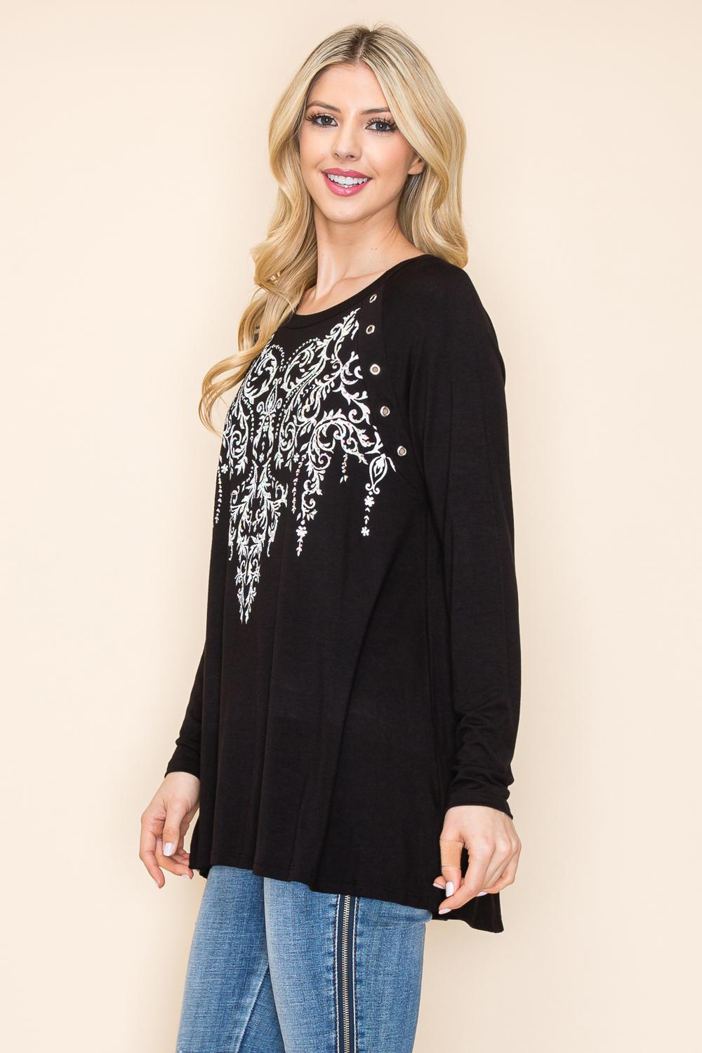20492L-Top,  LONG SLEEVE SWING FLARE HEM TOP With Rhinestone and Grommets by Vocal
