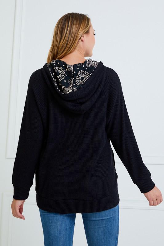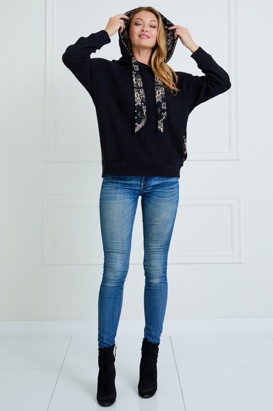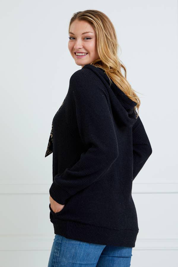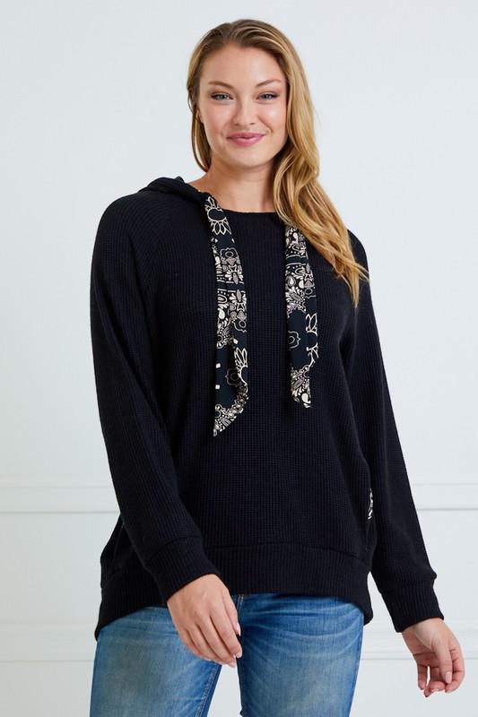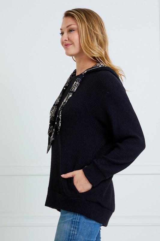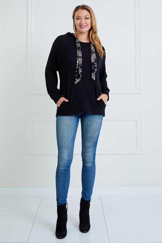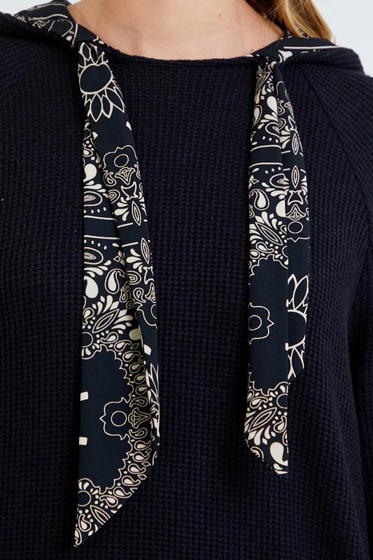 TIE NECK HOODIE TOP WITH POCKET