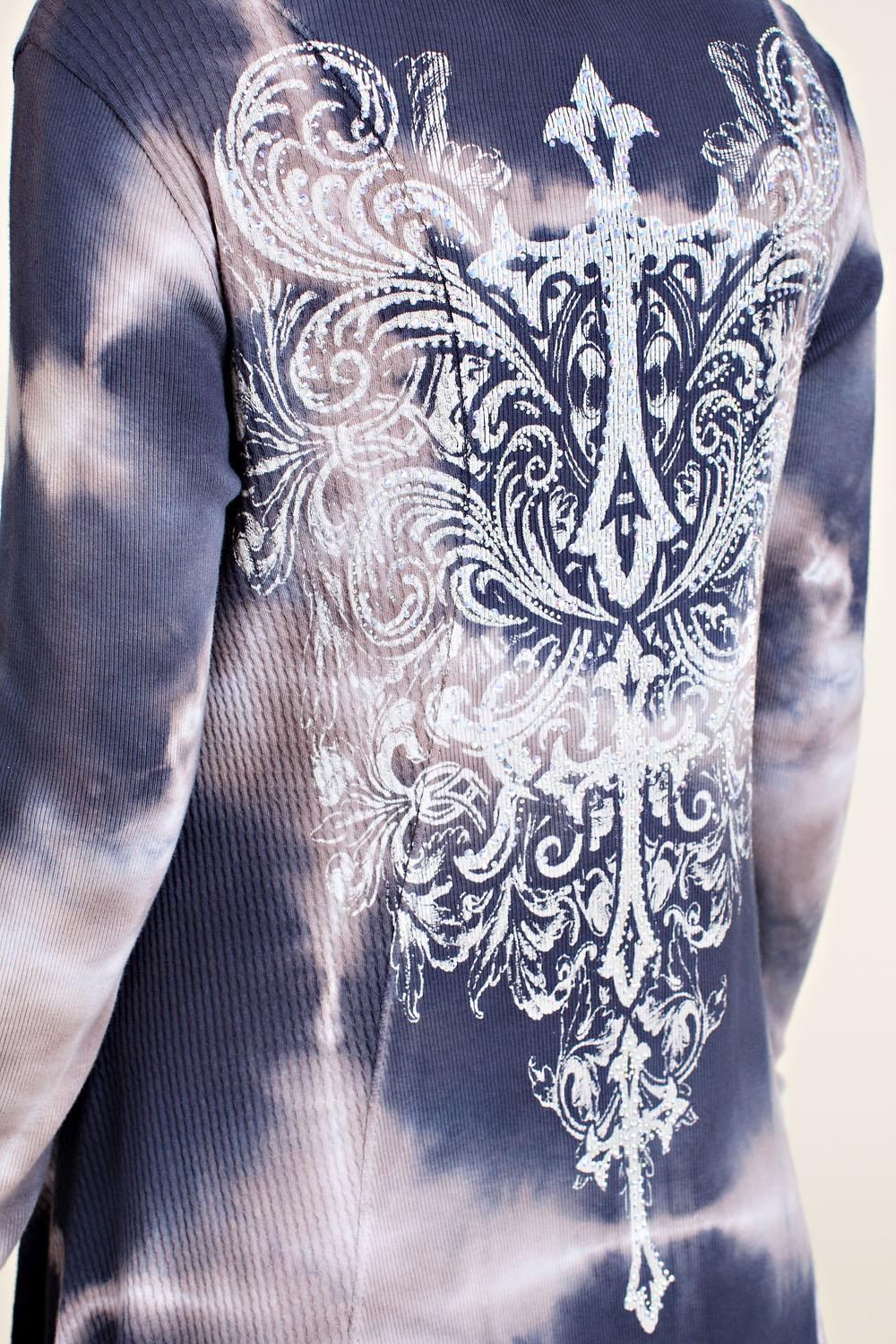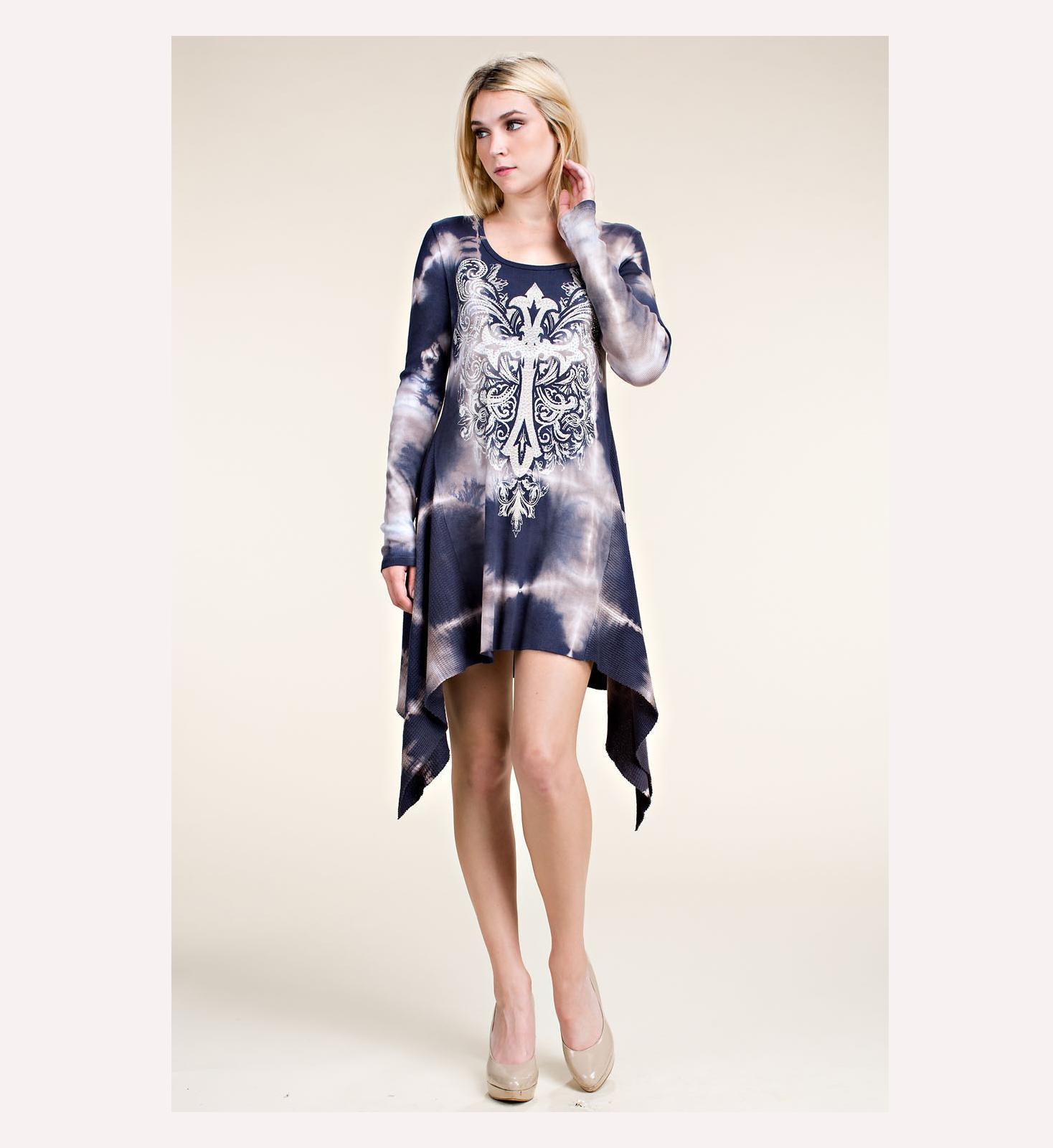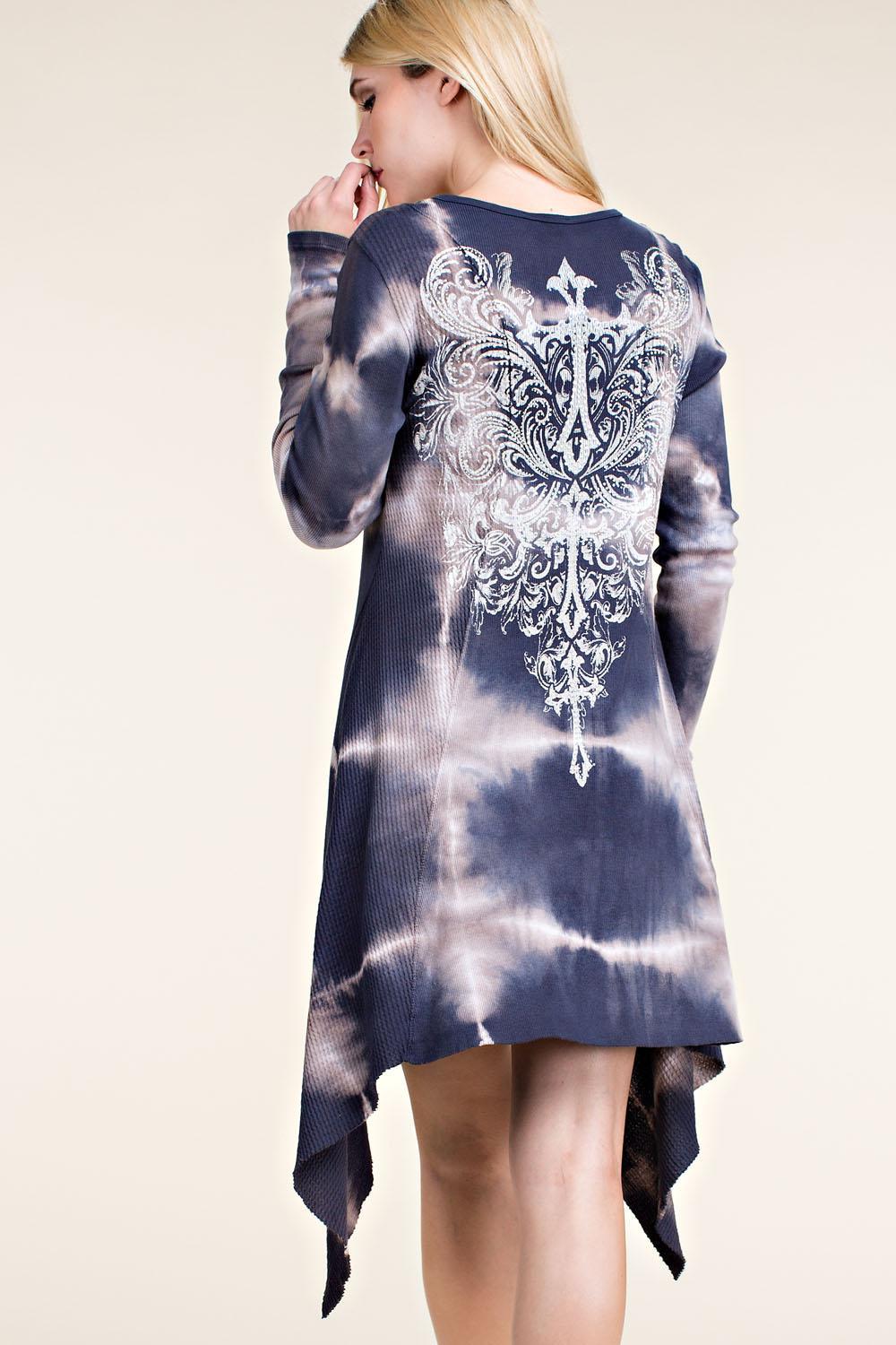 Vocal Blue- Cream Long Sleeves Tie dye Dress With Rhinestone