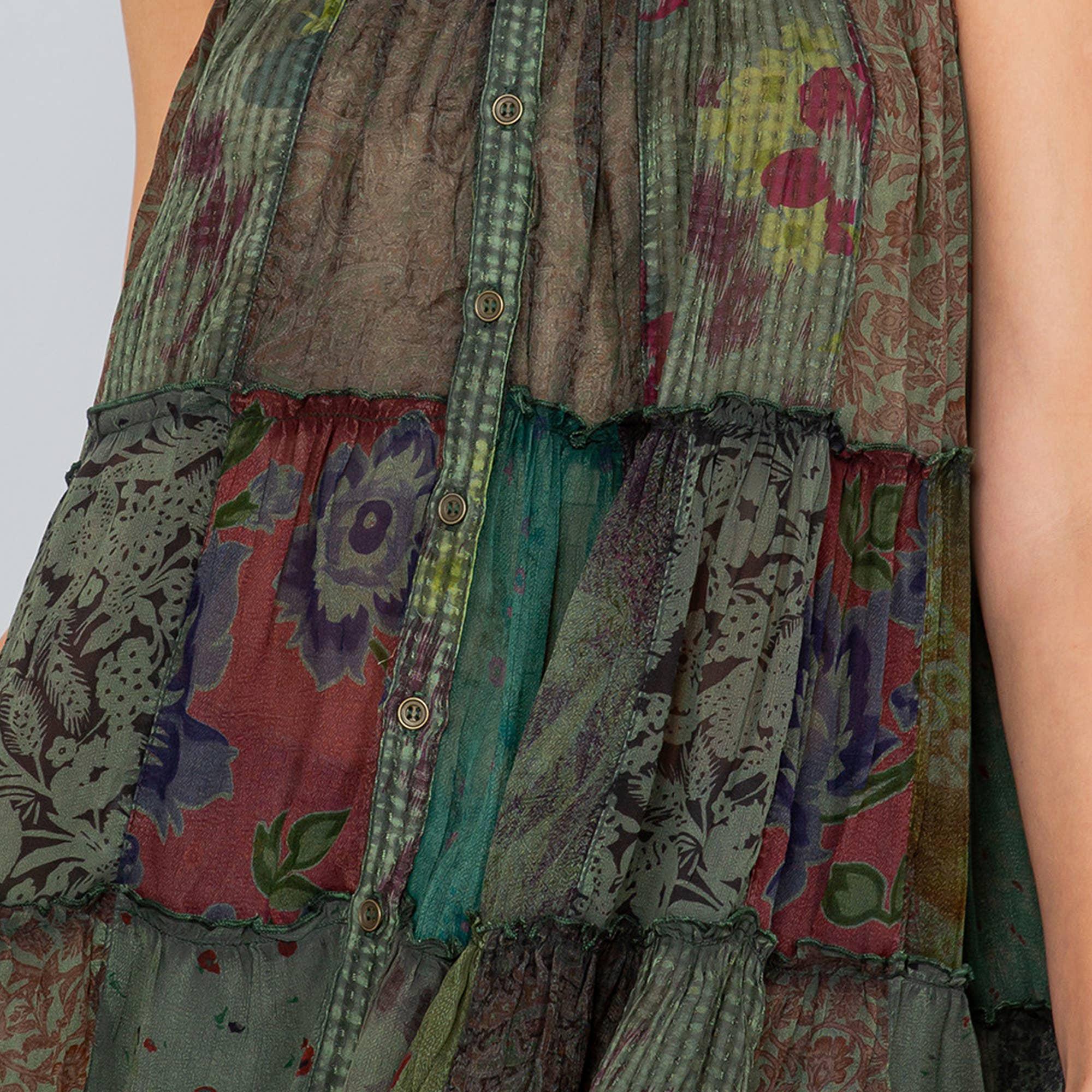 • Sleeveless Patchwork Jhabla Top in Basil Overdyed Georgette Prints