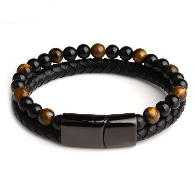 Black Agate Tiger Eye Leather Bracelets Unisex / Men Jewelry Vintage Classic Retro Bracelets