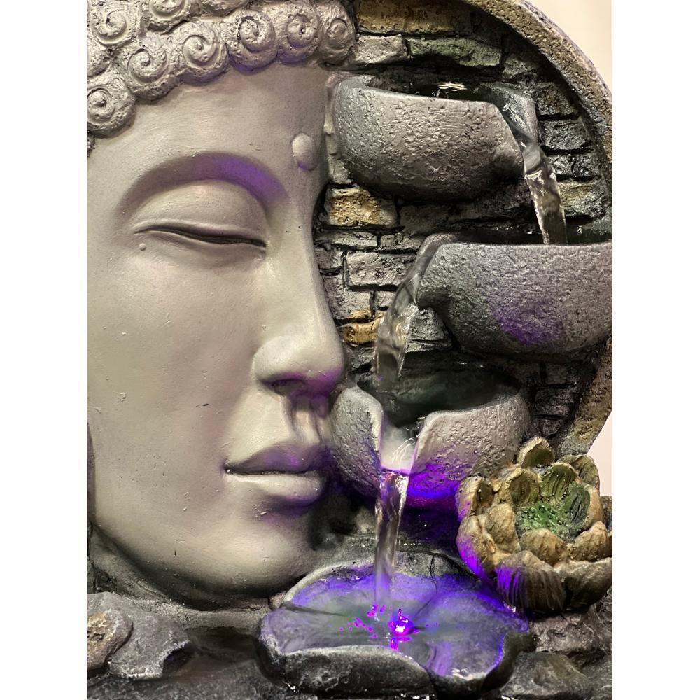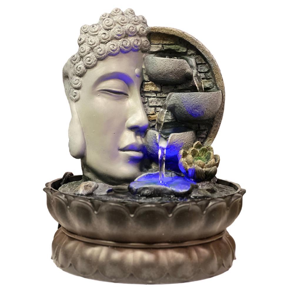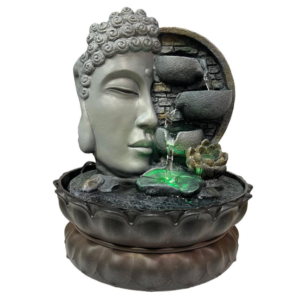 Buddha Side Face with Lotus Flower & LED Antique Resin Tabletop Waterfall Fountain 21 cm*21 cm*27 cm