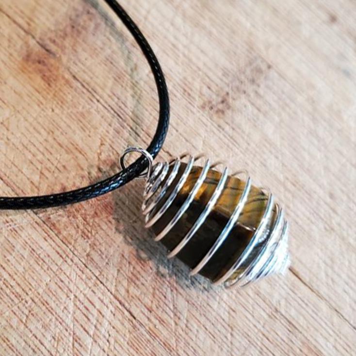 Cage with Tiger Eye Pendant Necklace Natural Crystals For Energy Balancing, Meditation, Reiki, Healing Approx. 2cm Pendant