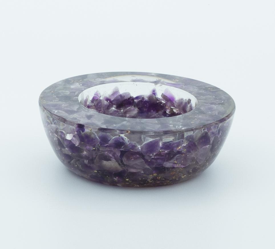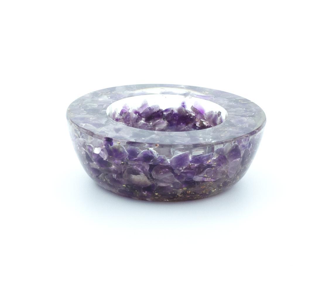 Amethyst Crystal Orgone Candle Holder/ Natural Stone Crystal Candle Stand for Tealight Candles 2.8 x7 x 2.5 cm