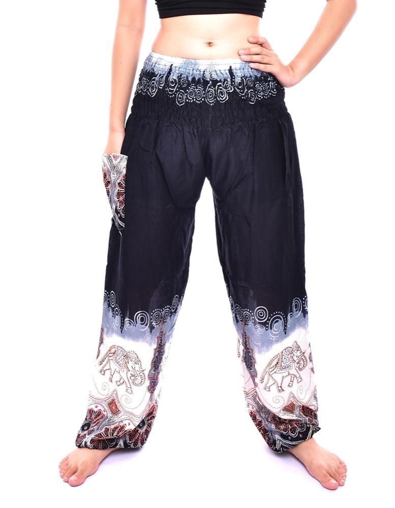 Elephant Print Pant, Comfy Elastic Thai harem pants with single pocket 100% Rayon