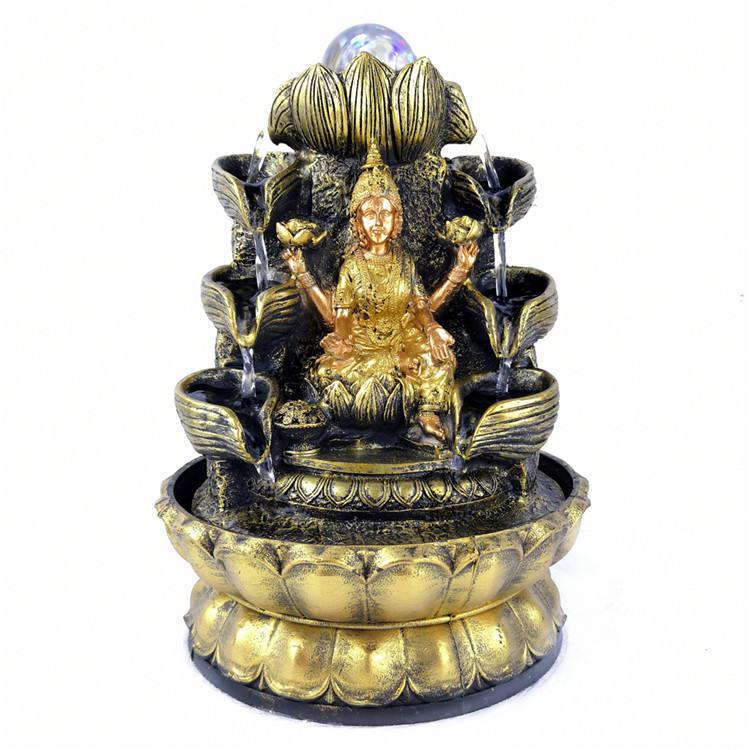 Goddess of Wealth & Prosperity Goddess Lakshmi Fountain / Lakshmi with Lotus Flower, Rolling Crystal Ball & LED Antique Resin Tabletop Waterfall Fountain 22 cm*22 cm*29 cm