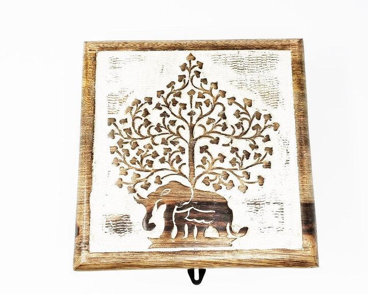 Hand Carved Decorative Elephant w/ Tree of Life Wooden Storage Box, 7"x7"