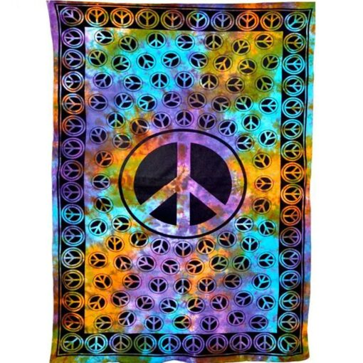 Tags: boho wall tapestry, Hippie dorm room decor, peace sign tapestry, psychedelic bedroom wall decor, Tie dye wall hanging