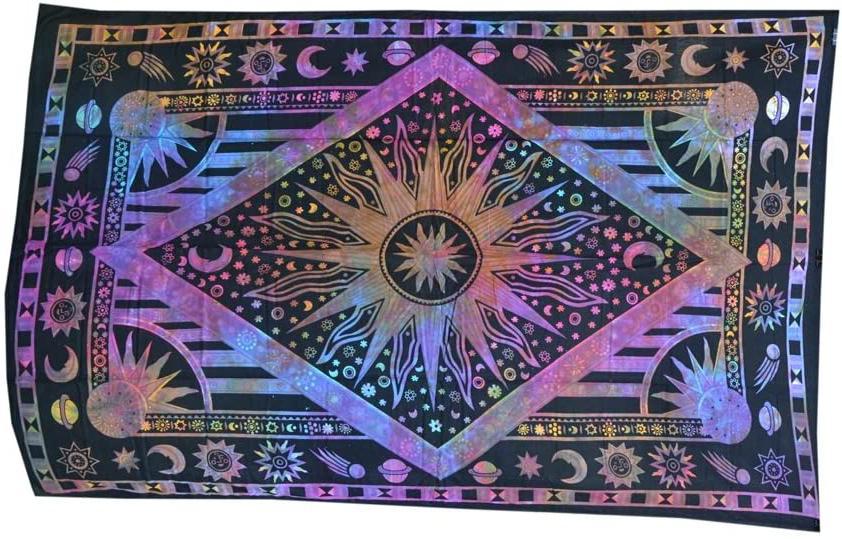 Rhombus Celestial Sun Moon Star Planet Poster Wall Hanging Handmade Cotton Tapestry 40″x30″ inch