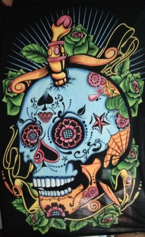 Sugar Skull Dagger Poster Wall Hanging Handmade Cotton Tapestry 40″ x 30″ inch