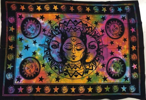 Sun Split Moon Tiedye Poster Wall Hanging Handmade Cotton Tapestry 40″ x 30″ inch
