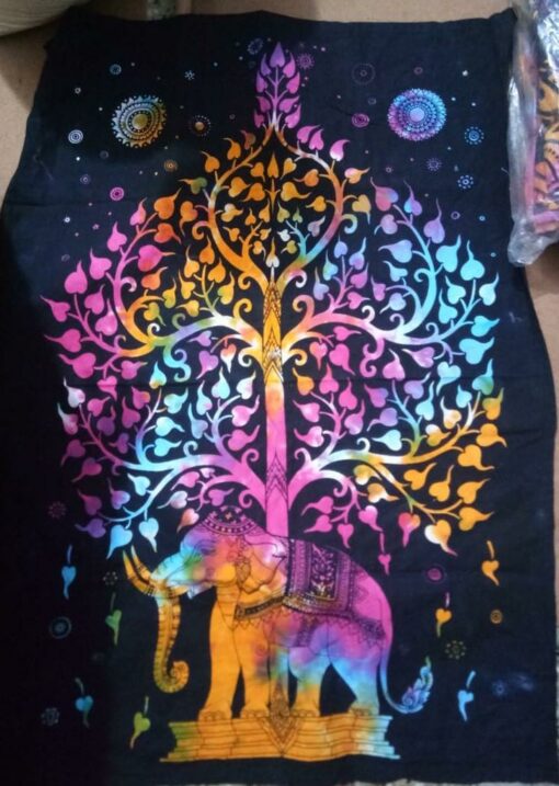 Tree of life With Elephant Black Base Tiedye Poster Wall Hanging Handmade Cotton Tapestry 40″ x 30″ inch