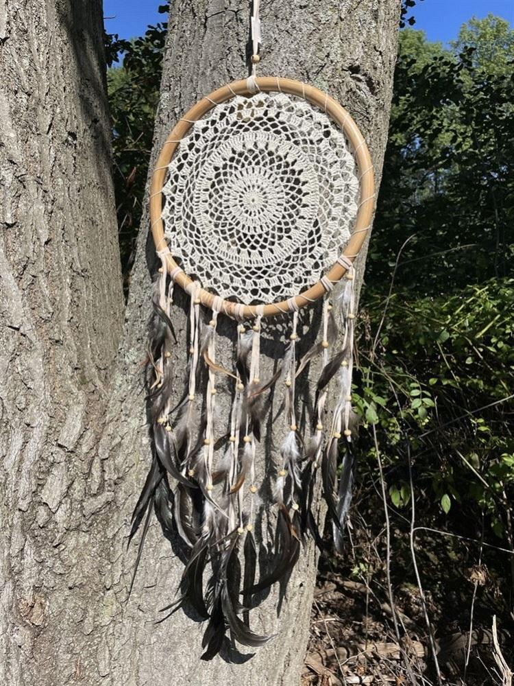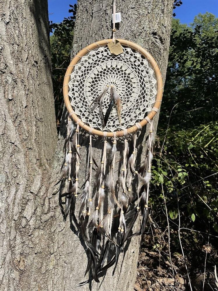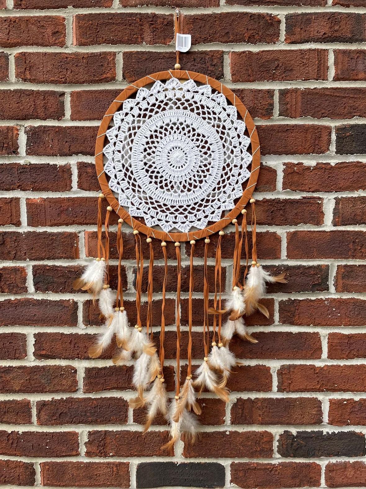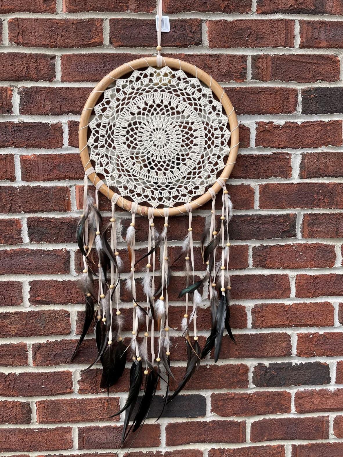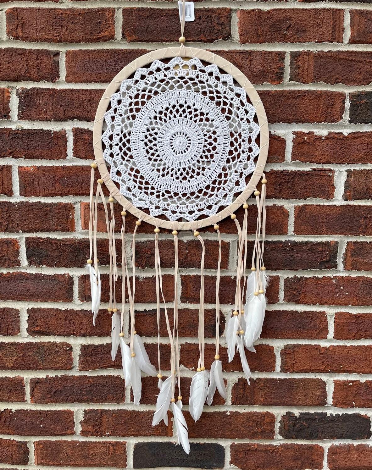 Cotton crochet single ring dreamcatcher Dia 32 – 34 cm length 85 -100 cm