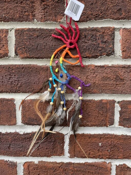 Be the first to review “Suede leather rainbow kokopeli dreamcatcher 14 cm” Cancel reply