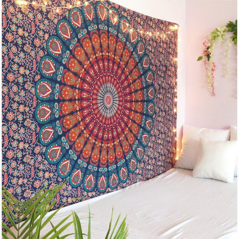 Hippie Tapestry Twin size - Blue Mirchi Kali Mandala Boho Bohemian Decor Psychedelic Tapestries Wall Hanging Mandala Room Hangings 84 x 54 inch