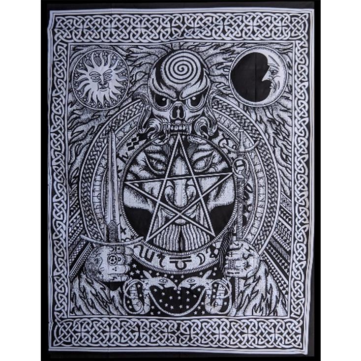 PAGAN SUN MOON SKULL CELTIC SWORD SNAKE TAPESTRY