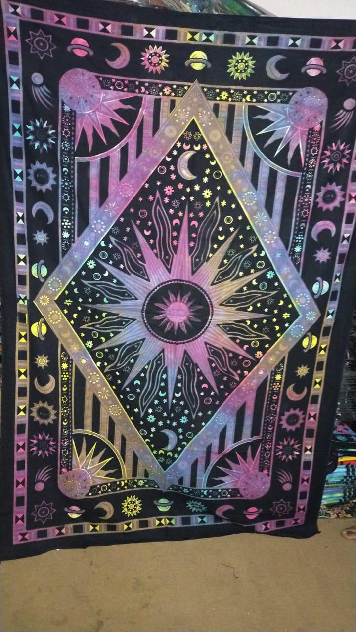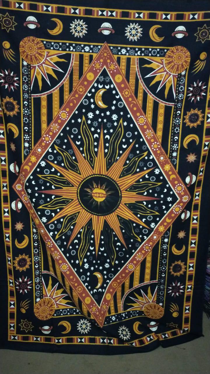 Rhombus Celestial Sun Moon Star Planet Handmade Cotton Tapestry 84″ x 54″ inch