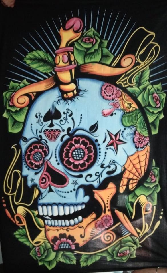 Dagger Sugar Skull Head of the Human kankal Wall Hanging Handmade Cotton Tapestry 84″ x 54″ inch