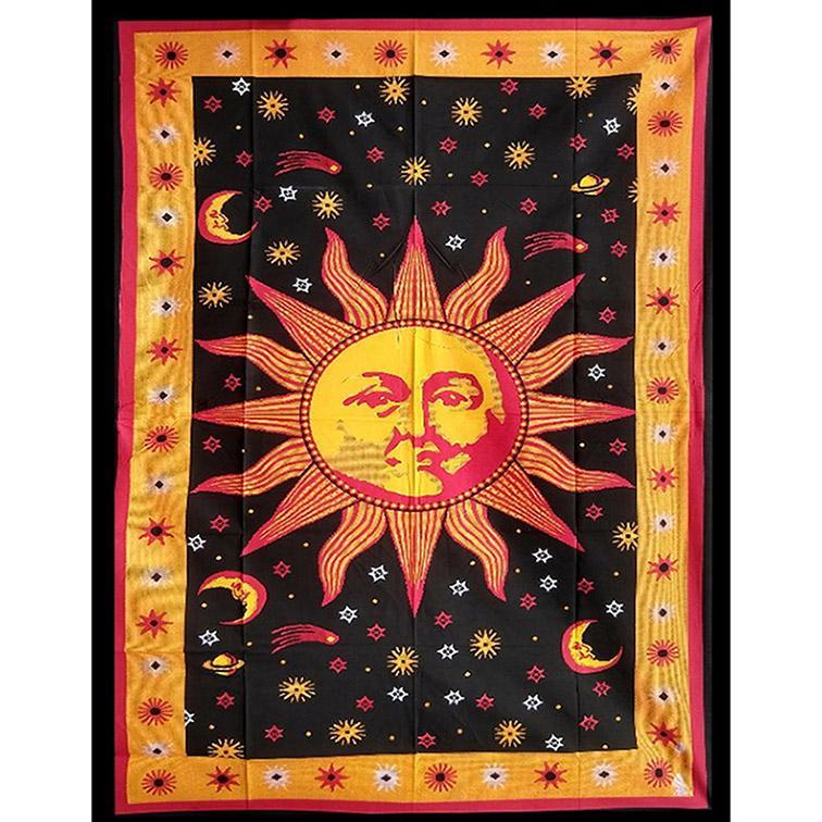 Sun Moon Yellow Black and Red Tapestry 84″ x 54″
