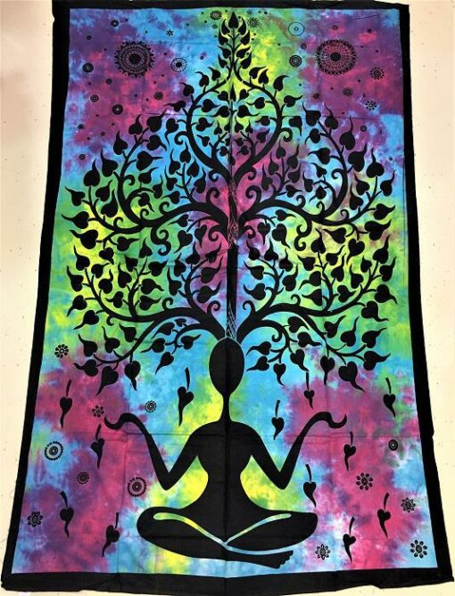Tree Of Life With Lady Yogi Wall Hanging Handmade Cotton Tapestry 84″x54″ inch