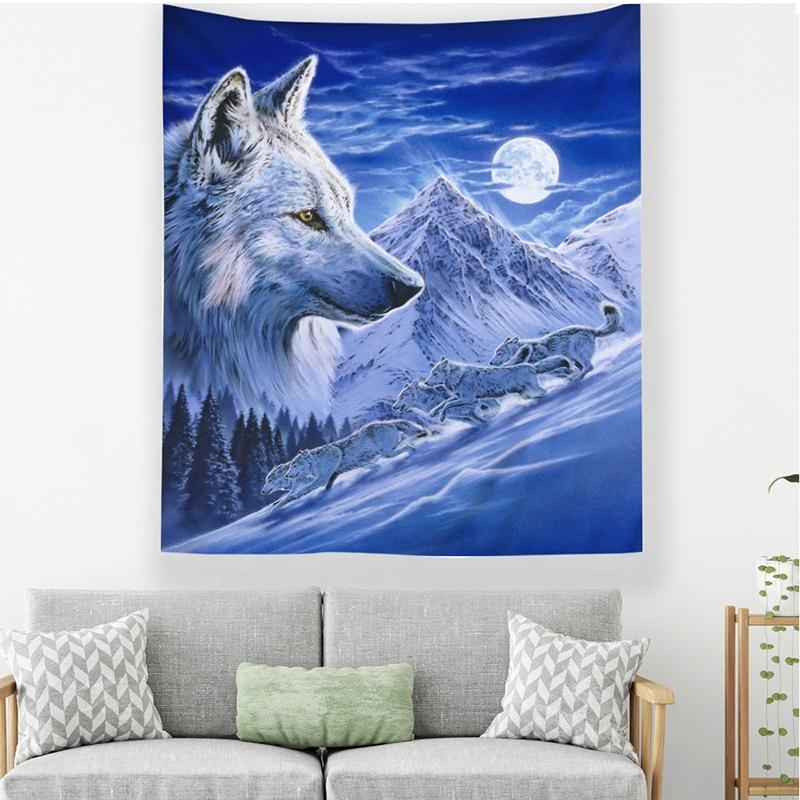Wolf & Mountains Tapestry, Wall Hanging, Table Cover, Home Decor