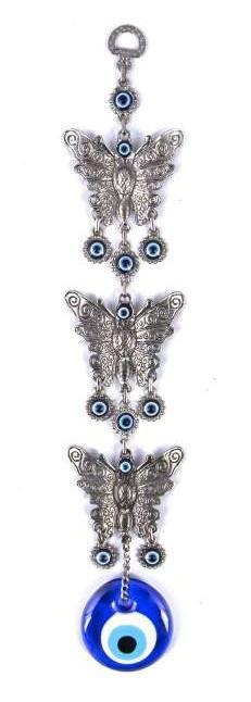 3 Butterfly with Evil Eye Hangings, Handmade, 14″ Inch