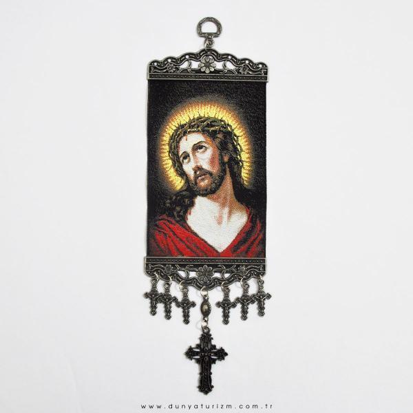 Jesus Medium Carpet Wall Hanging Handwoven, Gold Aura, 12.5 Inch